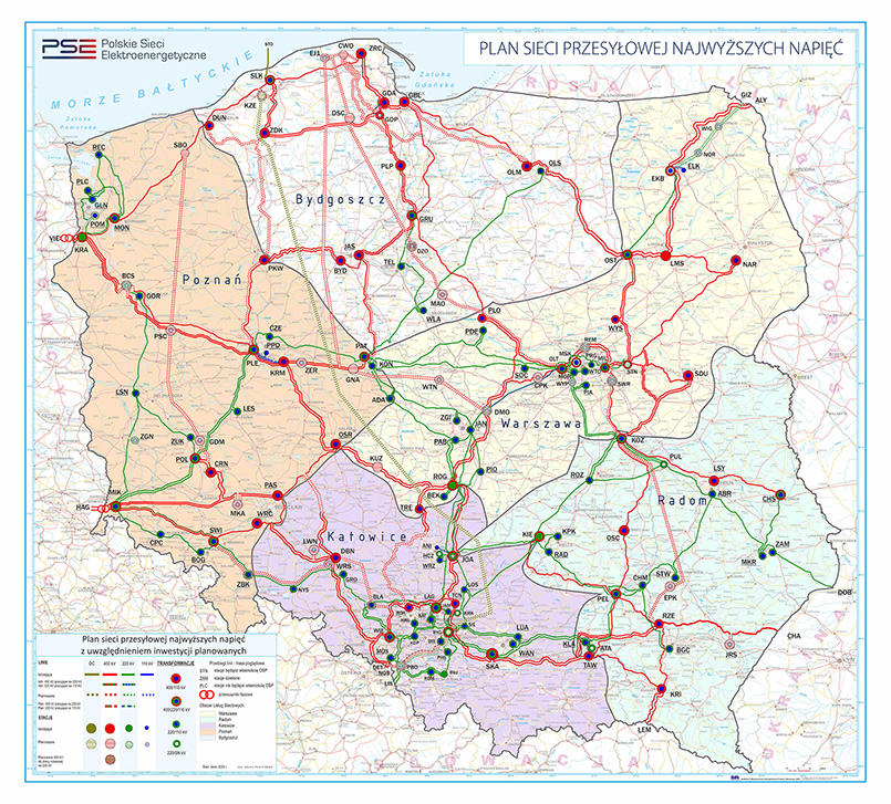 Nie ma możliwości magazynowania energii elektrycznej, co oznacza że w każdym momencie ilość energii wytwarzanej w elektrowniach musi być równa energii zużywanej przez odbiorców. System elektroenergetyczny musi więc być zdolny do zmiany kierunków i ilości przesyłanej energii. Jest to możliwe dzięki licznym połączeniom pomiędzy elektrowniami, stacjami elektroenergetycznymi oraz grupami odbiorców energii. Połączenia takie zapewnia sieć linii elektroenergetycznych, które pracują na różnych poziomach napięć. Im sieć ta jest bardziej rozbudowana, a linie nowoczesne, tym większa szansa na niezawodną dostawę energii do każdego odbiorcy. Właścicielem i operatorem sieci przesyłowej najwyższych napięć są Polskie Sieci Elektroenergetyczne S.A. (PSE S.A.).